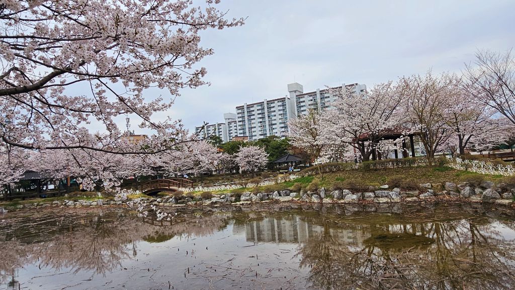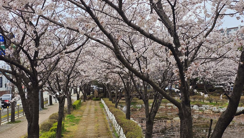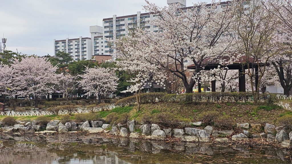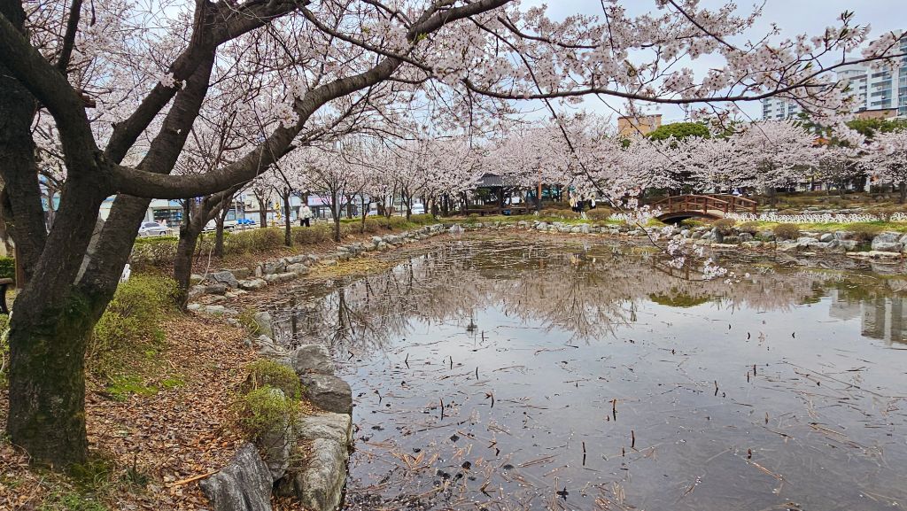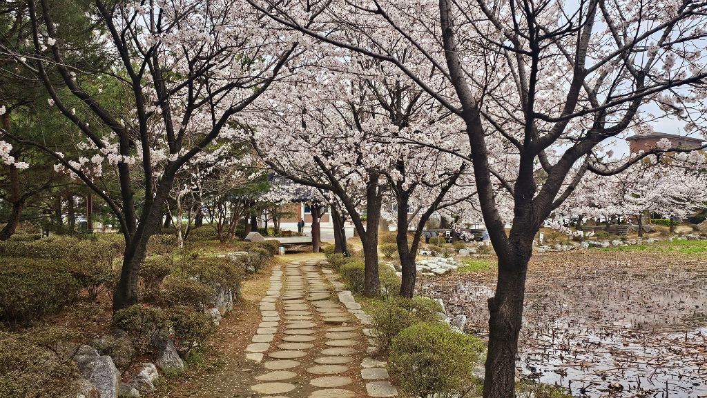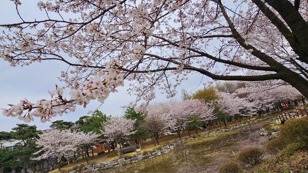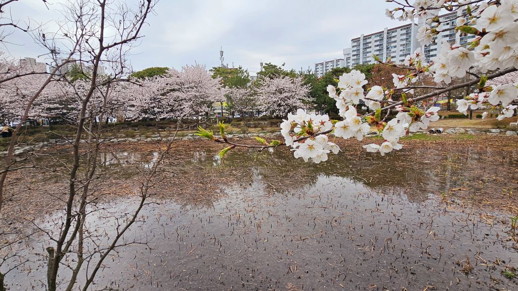 국원고등학교 연꽃공원에 만개한 벚꽃