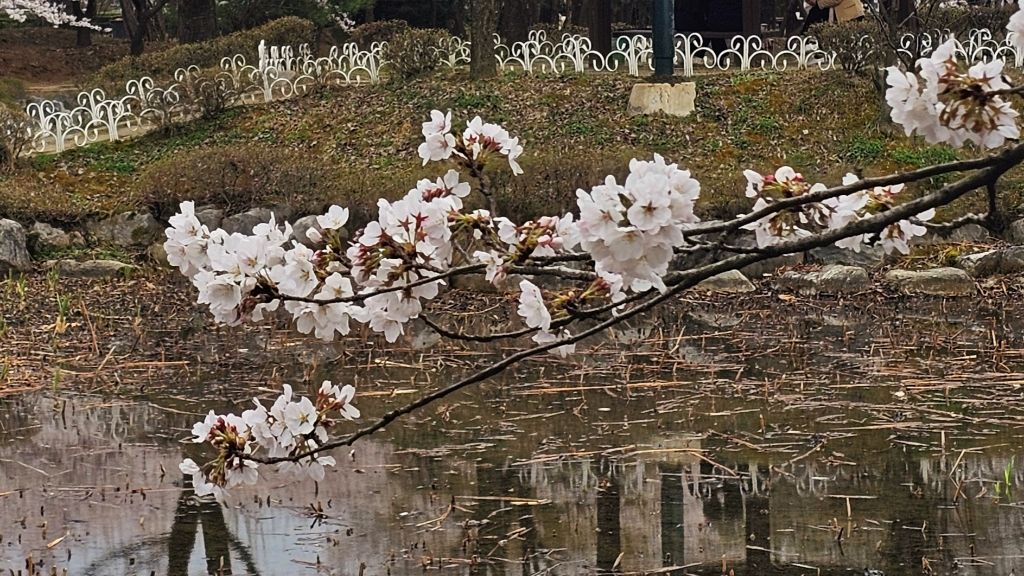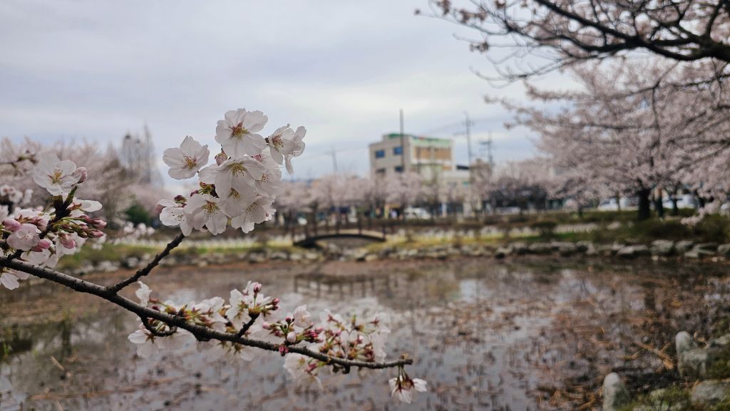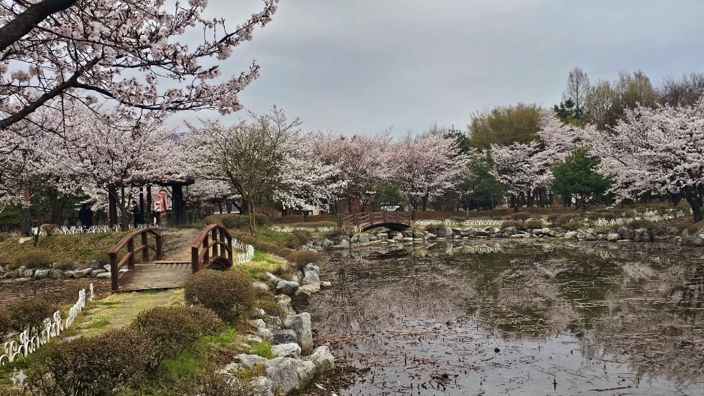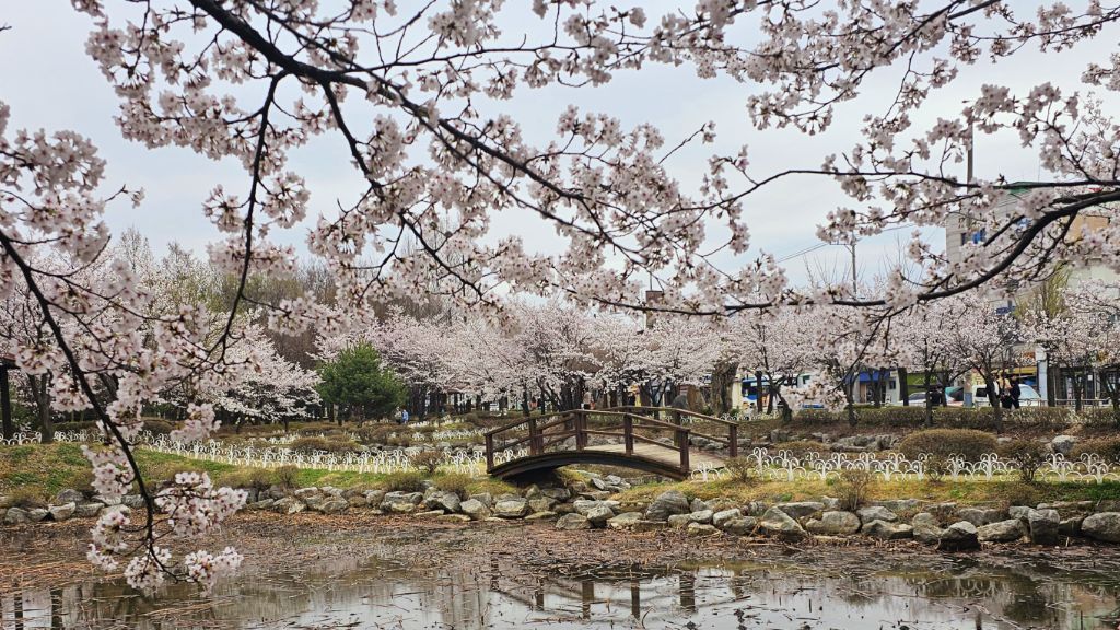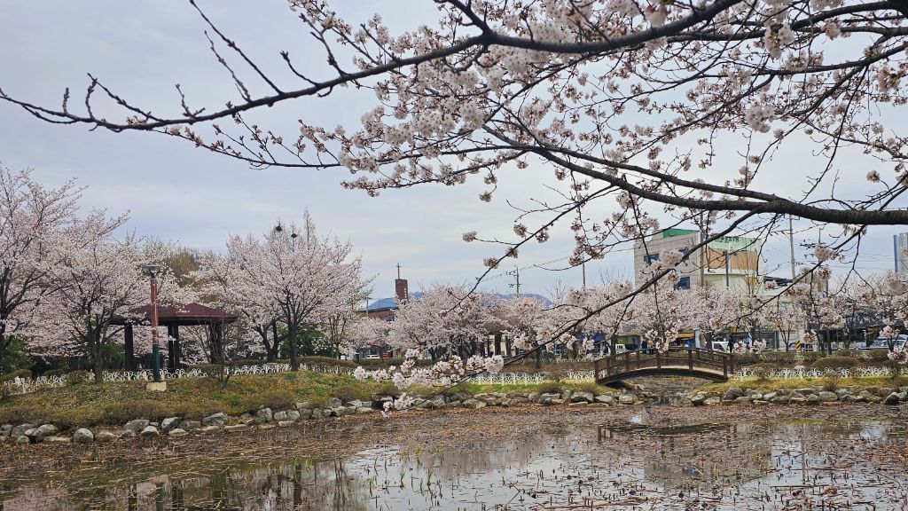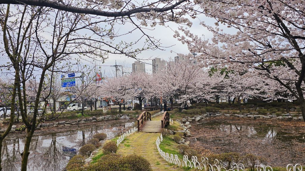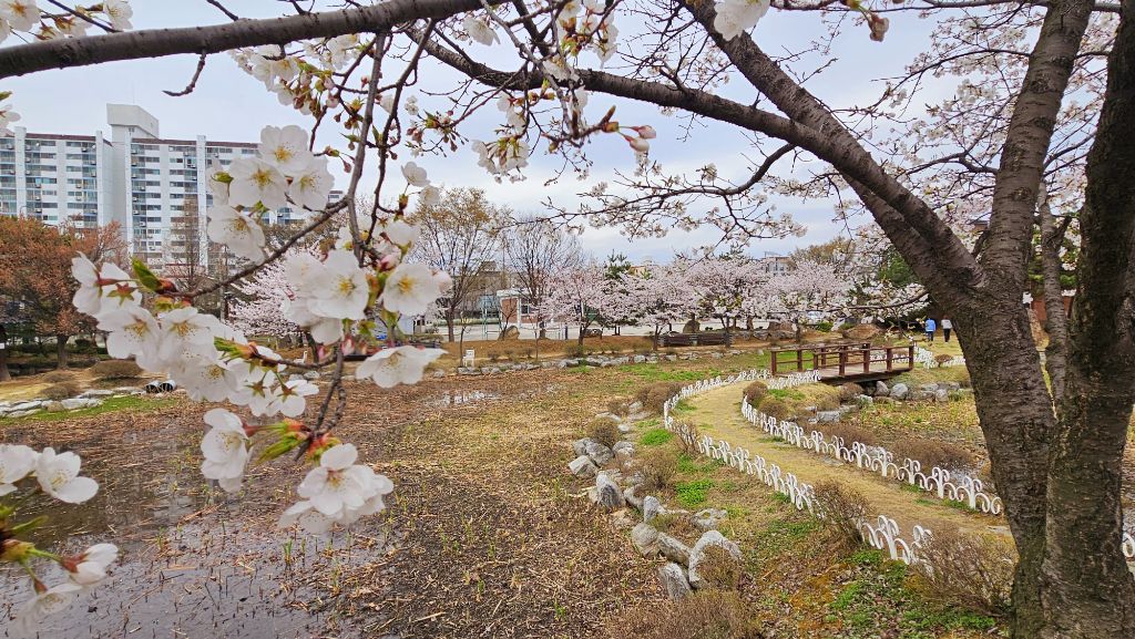 국원고등학교 연꽃공원에 만개한 벚꽃